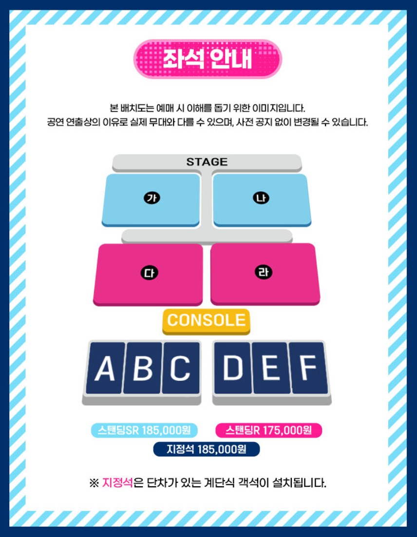지정석: 185,000원 (※ 계단식 단차 적용)
