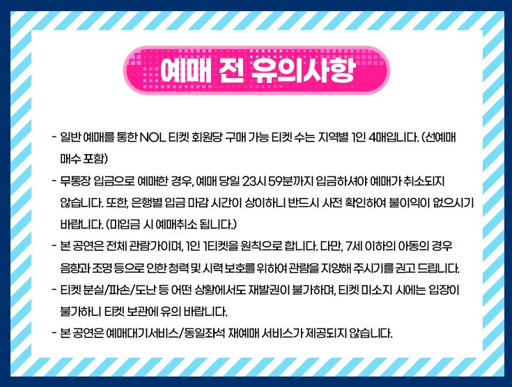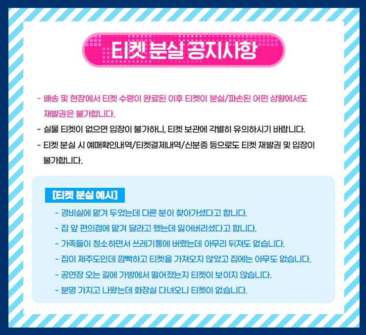 ※ 공연 당일 티켓 미소지 시 입장 불가하오니 반드시 안전하게 보관하세요.