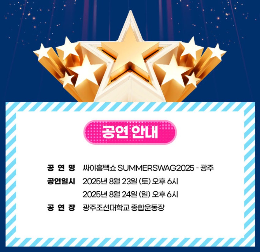 2025년 8월 23일(토)부터 24일(일)까지, 광주가 뜨겁게 젖습니다! 싸이흠뻑쇼 SUMMERSWAG2025 광주 공연은 흠뻑쇼 전국 투어의 대미를 장식할 마지막 무대로, 뜨거운 에너지와 시원한 물세례를 동시에 즐길 수 있는 진짜 여름 콘서트입니다. 예매 일정, 좌석 구성, 할인 혜택까지 한눈에 확인하고, 좋은 자리 미리 찜하세요!