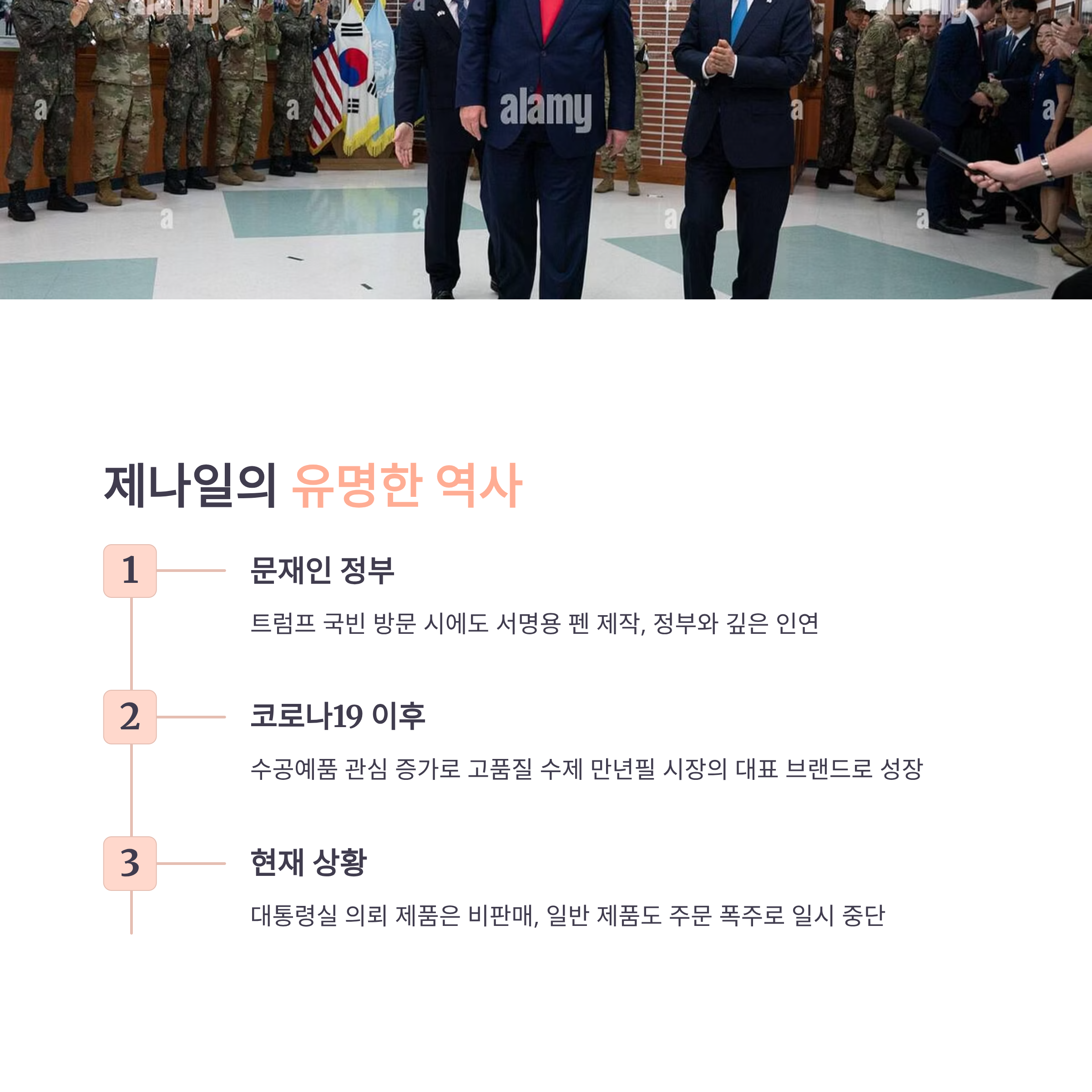 - 제나일은 과거 트럼프 대통령 방한 당시에도 방명록 서명 펜 제작에 참여