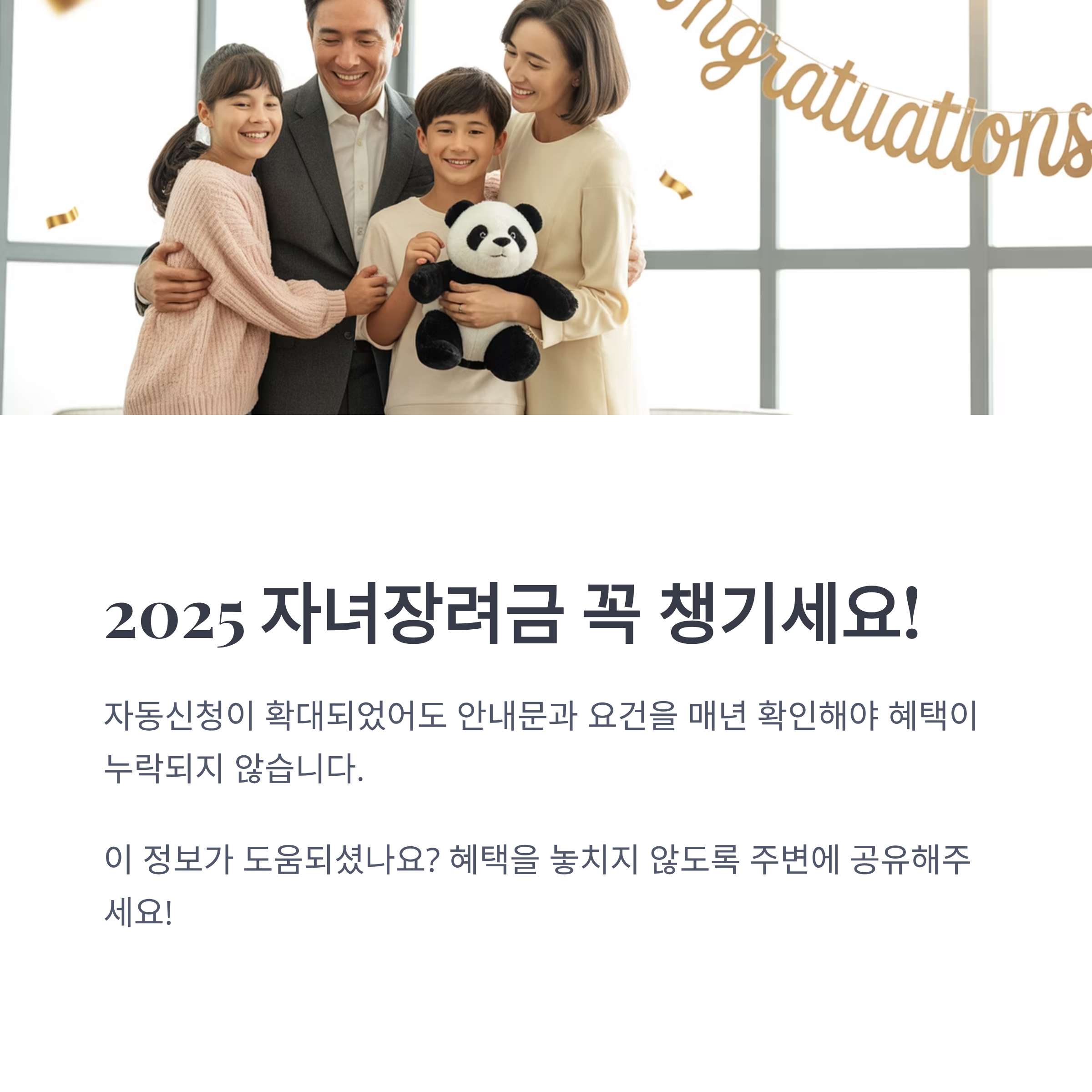 2025년 자녀장려금은 별도의 신청 절차가 필요하며,가구 요건과 소득·재산 기준 충족 여부에 따라 지급이 결정됩니다.