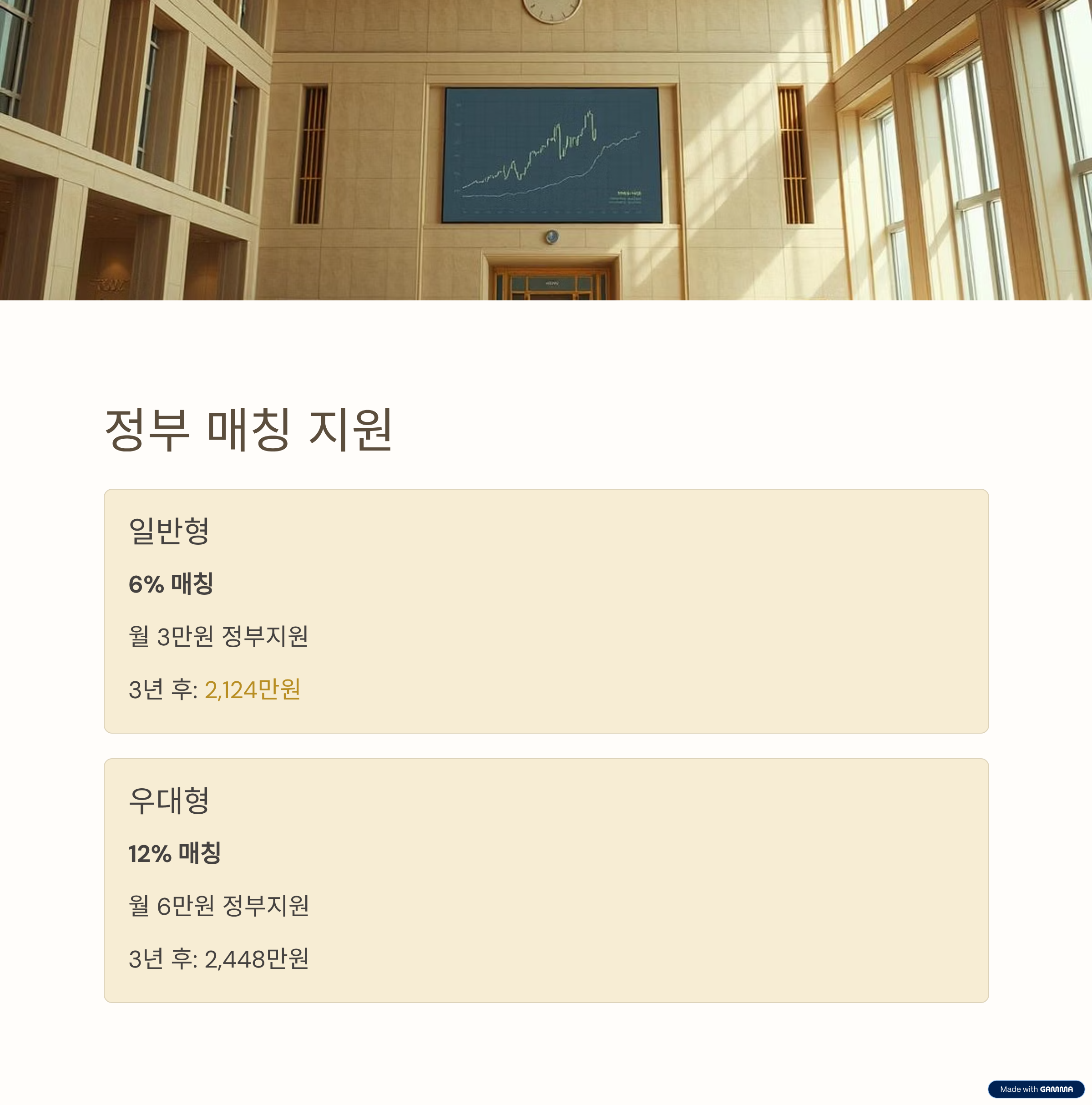 - 우대형(중소기업 재직): 납입액의 12% (월 6만 원 내외 지원)