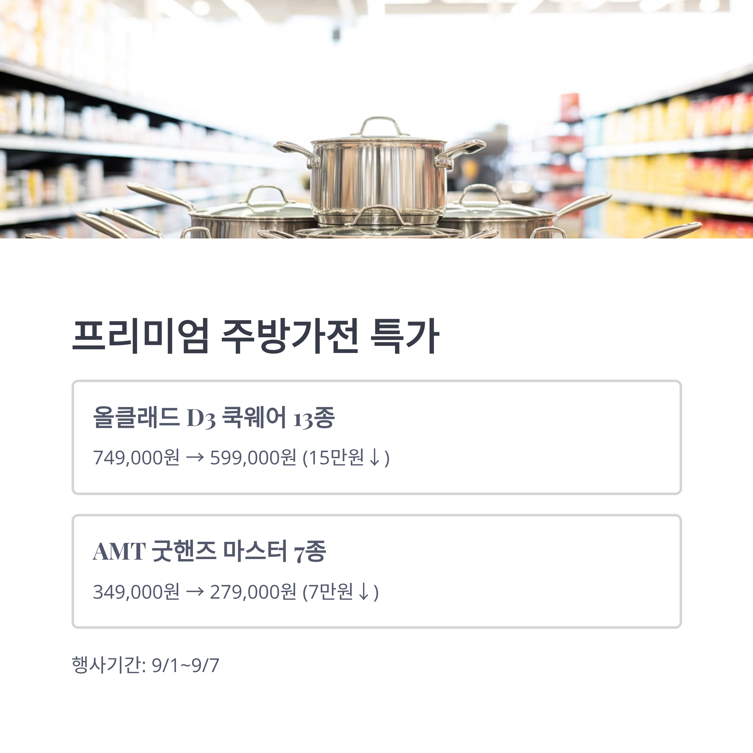 - 🍳 올클래드/AMT 프리미엄 쿡웨어: 13종·7종 한정 특가, 9/7까지