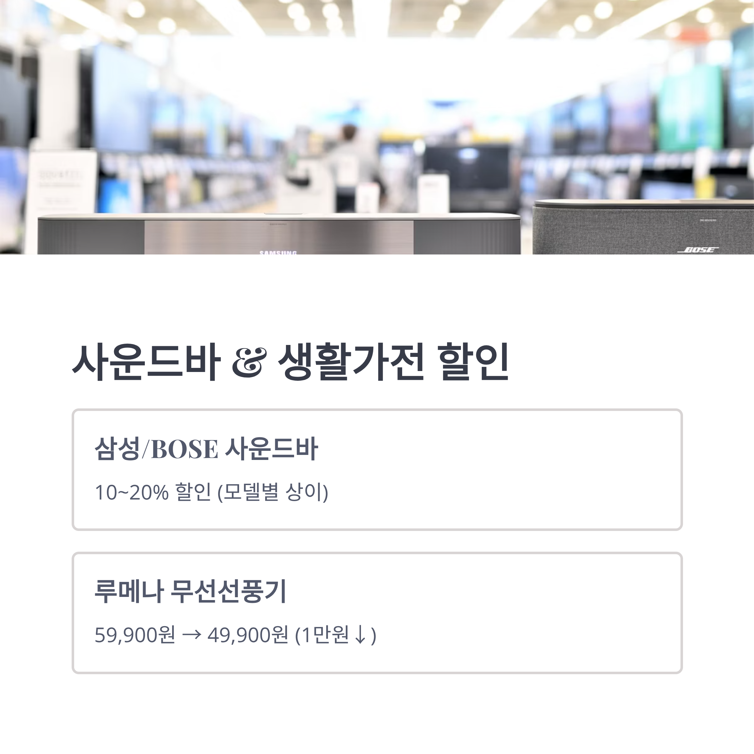 📺 최신 TV, 프리미엄 오디오, 주방용품까지 평소보다 더 큰 폭으로 할인되고 있어요.