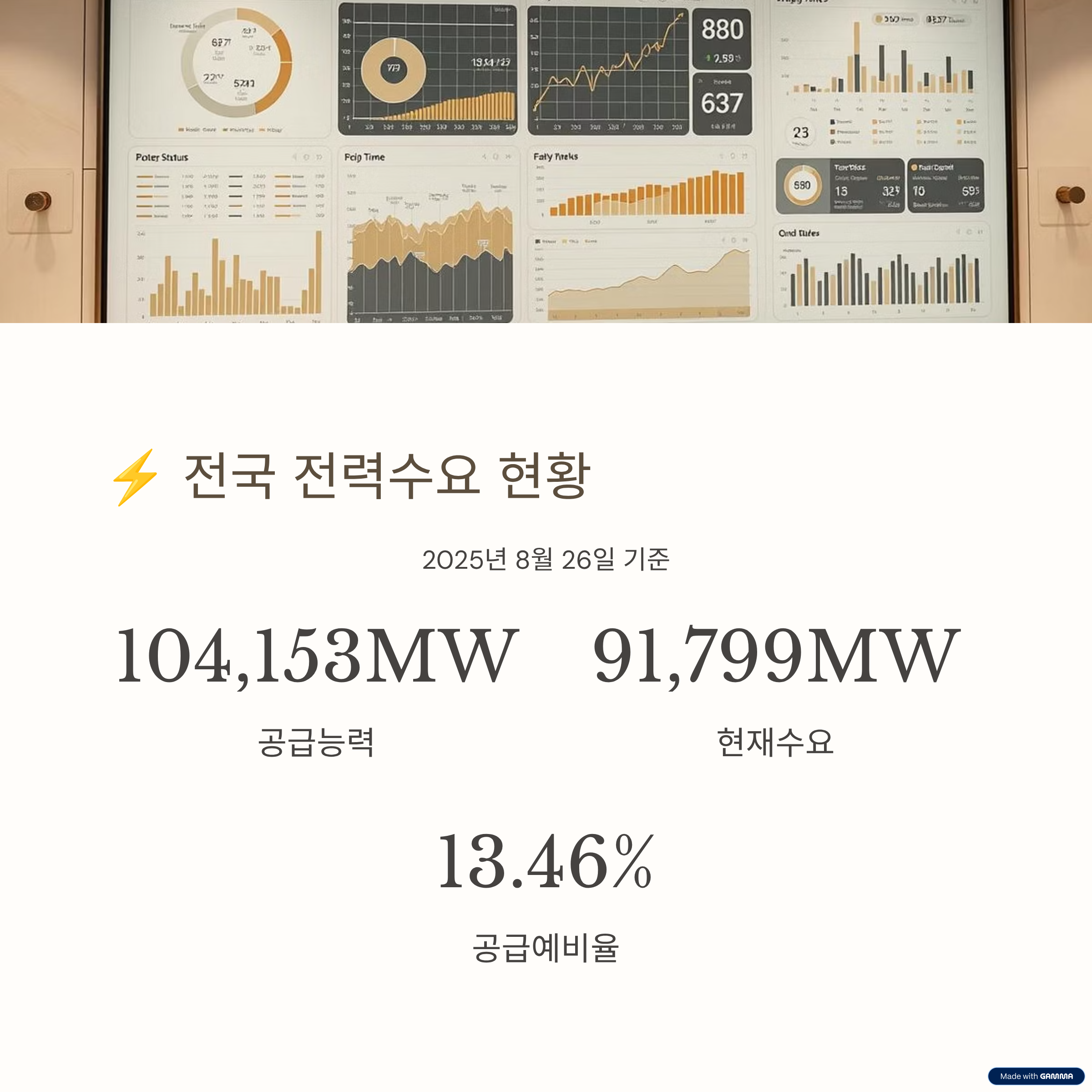 전국 실시간 전력수요 현황 (2025년 8월 26일 기준)