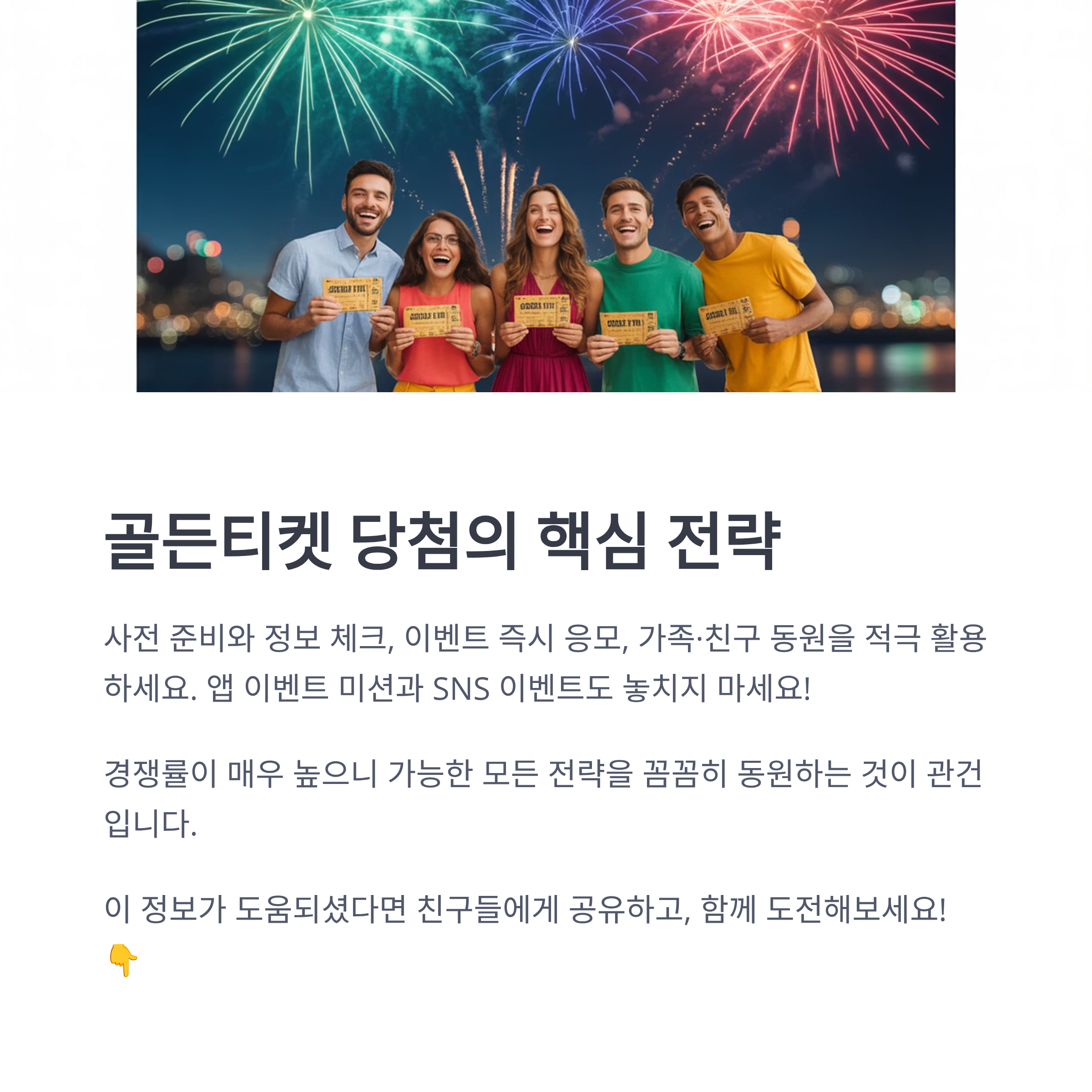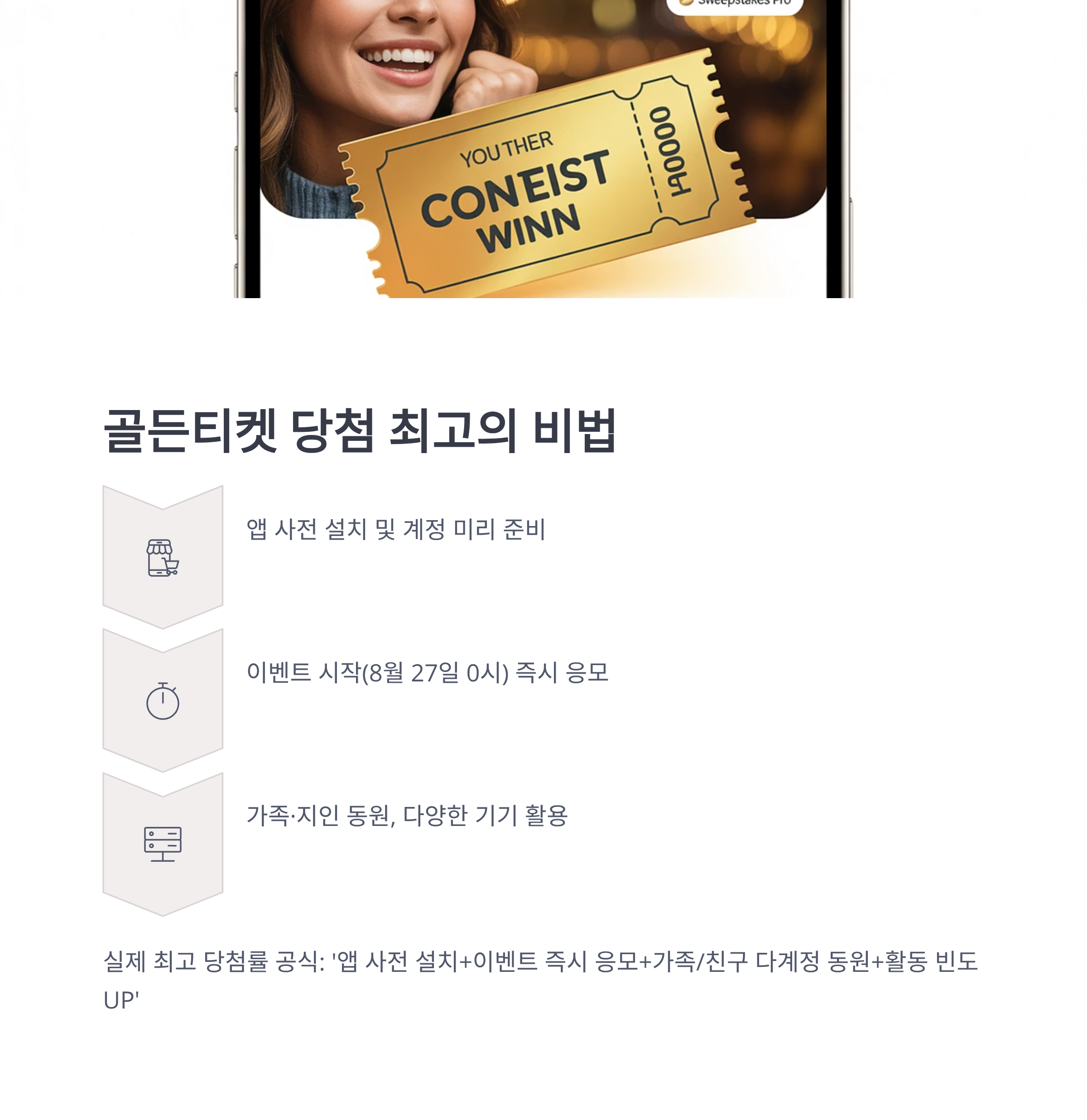 단순히 ‘운’에 맡기기보다 사전 설치, 빠른 응모, 지인 동시참여, 앱 활동 강화 등으로 확률을 높일 수 있습니다.