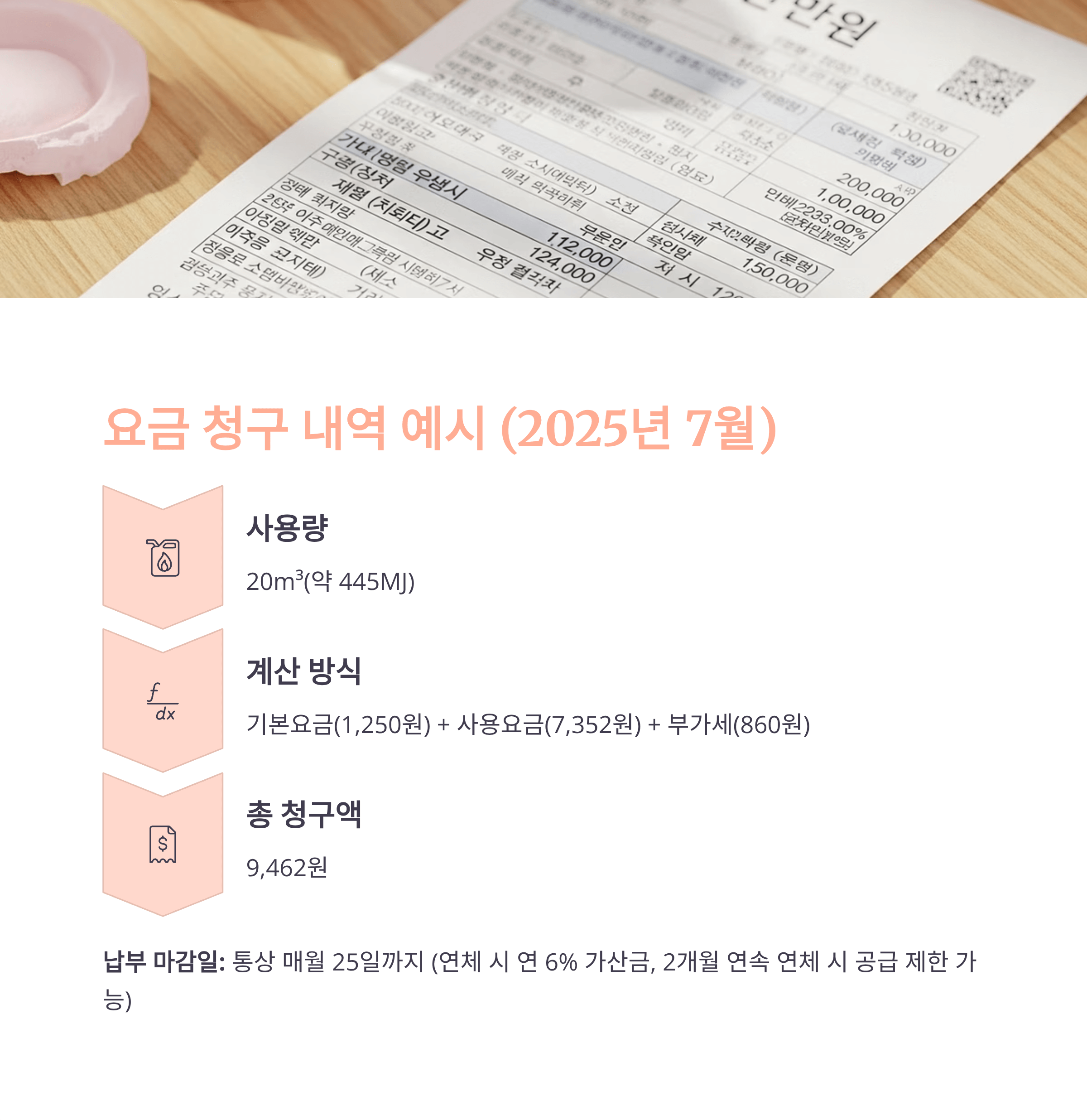 또한 연체 시에는 연 6%의 가산금이 부과되고, 2개월 연속 미납 시 공급 중단 조치가 있으니 유의해야 합니다.