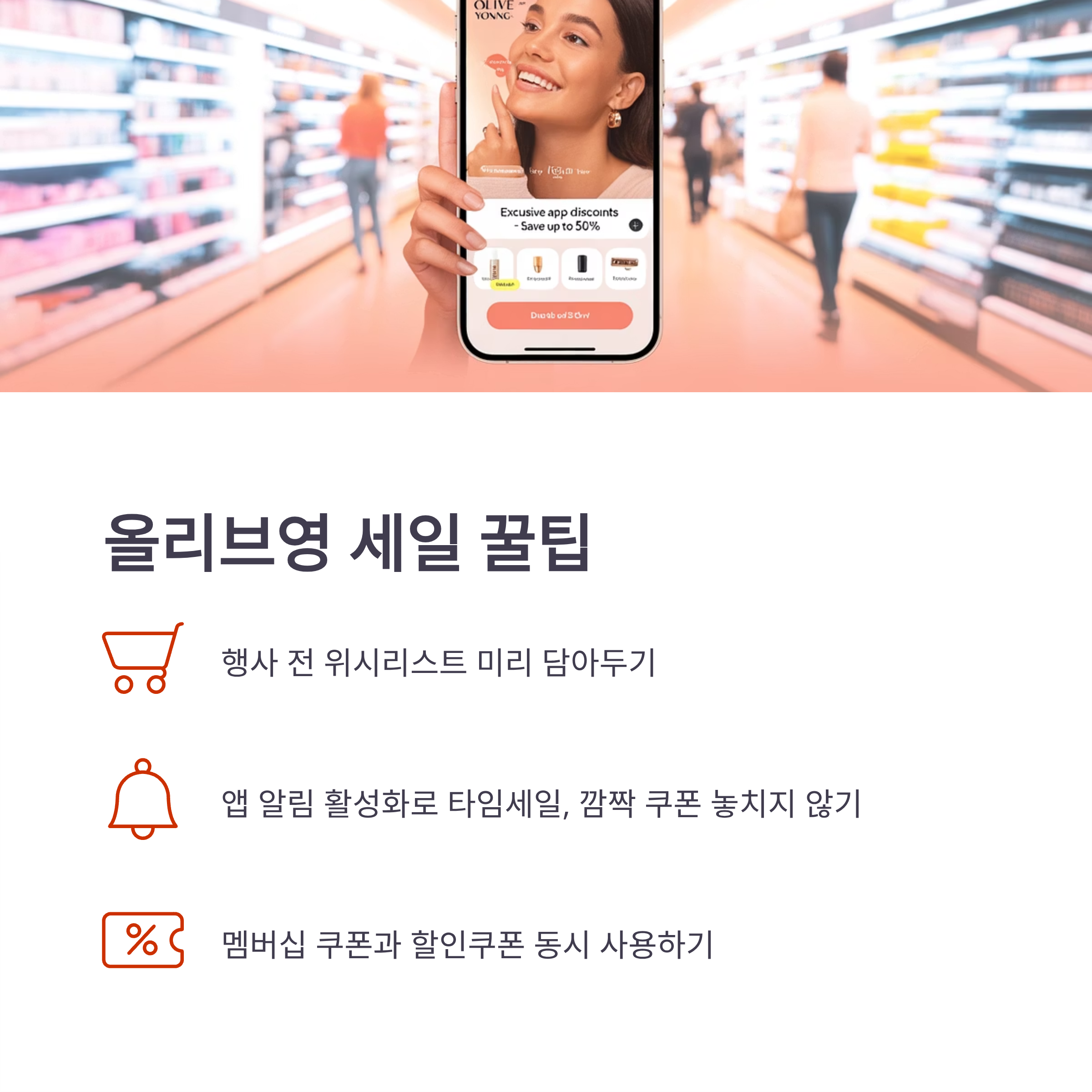 추가 혜택: 올리브영 앱 전용 쿠폰, 카드사 제휴 할인, 멤버십 적립금 사용 가능