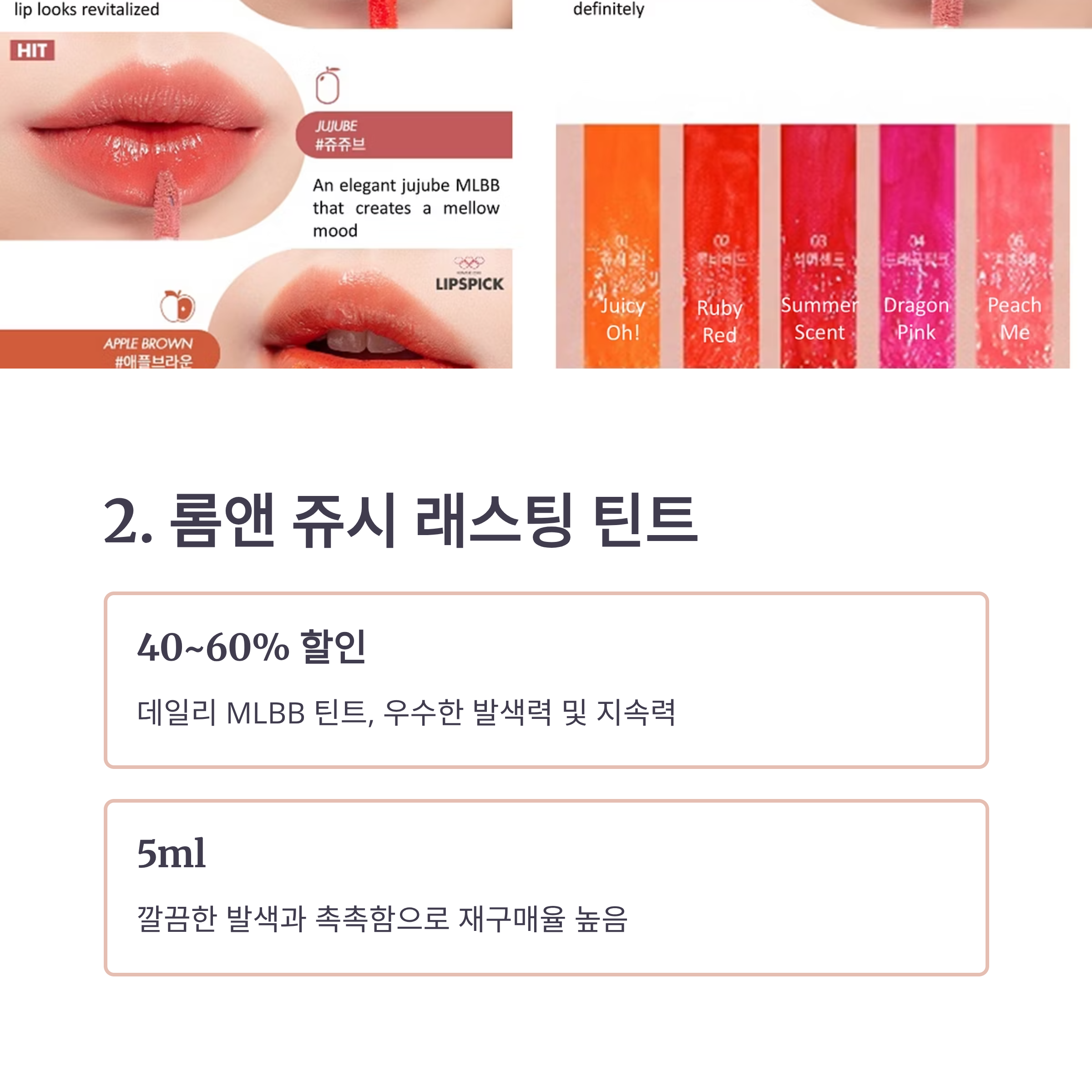 2. 롬앤 쥬시래스팅 틴트