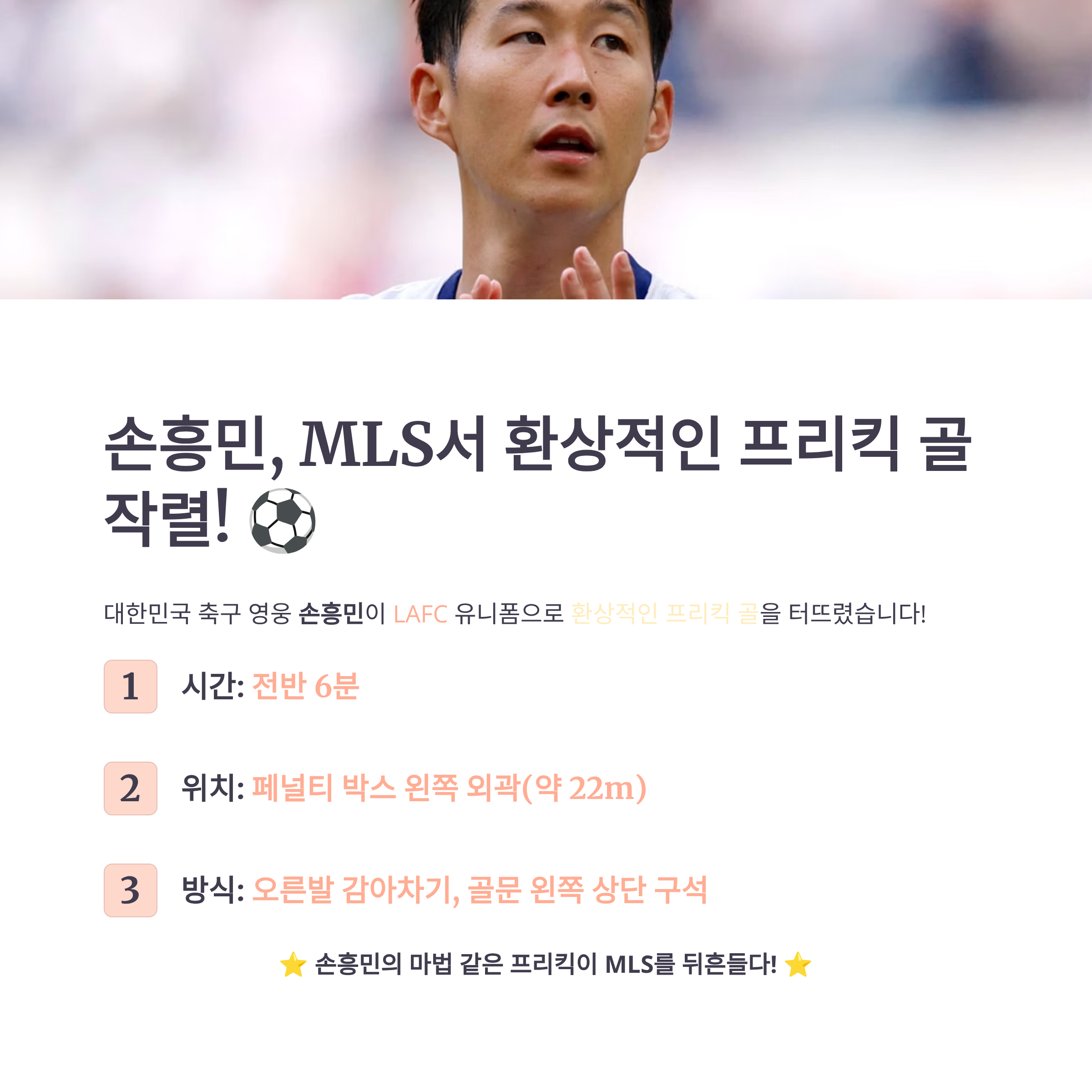 2025년 8월 24일, 손흥민의 MLS 데뷔골은 단순한 득점이 아니라 클래스를 증명한 프리킥 예술이었습니다.